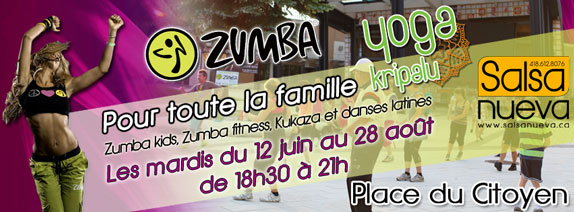 Nous débuterons les séances gratuites de Zumba et Yoga extérieures tous les mardis à partir du 12 juin, et ce, pour tout l'été jusqu'au 28 août inclusivement.