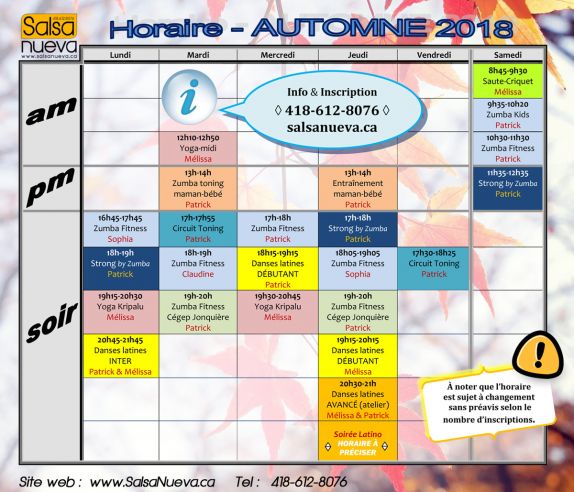 Voici les tarifs pour les cours offerts chez Salsa Nueva pour la session automne 2018: