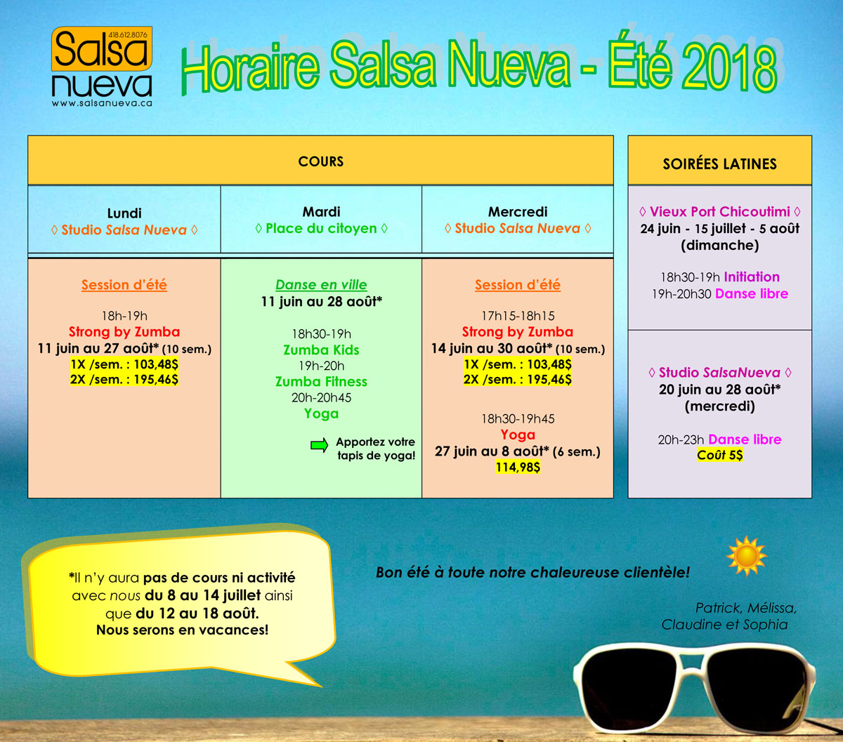 Voici la liste des cours offerts cet été chez Salsa Nueva.