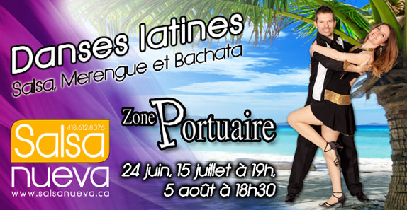 De 19h à 21h, venez danser la Salsa, le Merengue et la Bachata en plein air face au Hangar de la Zone portuaire de Chicoutimi les dimanches soir: