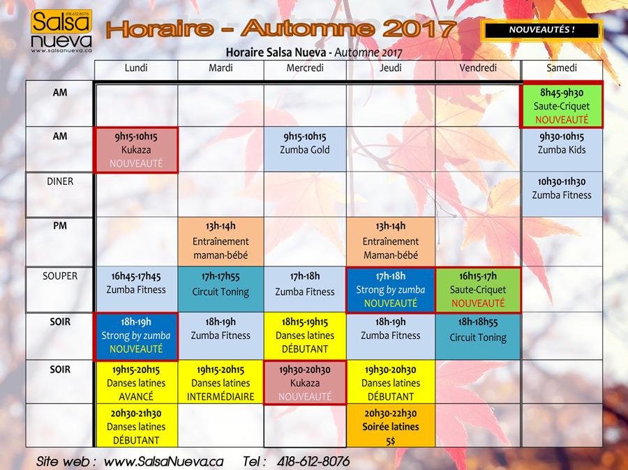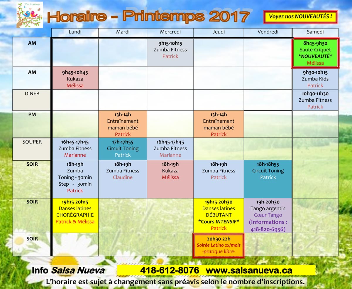 Salsa Nueva fera relâche de cours durant la relâche académique soit: