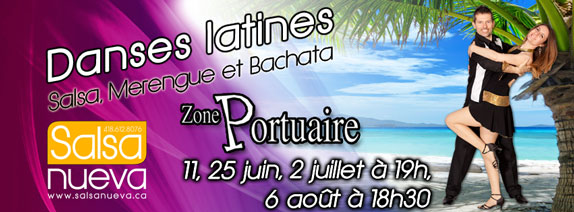 De 19h à 21h, venez danser la Salsa, le Merengue et la Bachata en plein air face au Hangar de la Zone portuaire de Chicoutimi les dimanches soir: