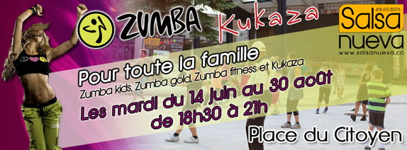 Nous débuterons les séances gratuites de Zumba et Kukaza extérieures tous les mardis, et ce, pour tout l'été jusqu'au 30 août inclusivement. Voici les détails de l'horaire: