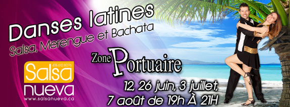 De 19h à 21h, venez danser la Salsa, le Merengue et la Bachata en plein air face au Hangar de la Zone portuaire de Chicoutimi les dimanches soir: