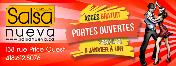 Consultez notre site internet www.salsanueva.ca pour le détail des cours ou appelez nous pour vous inscrire dès maintenant au 418-612-8076. Faites vite, les places sont limitées!
