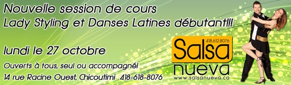 Pour plus d'information, vous pouvez aussi consulter notre page facebook au https://www.facebook.com/SalsaNueva.ca et notre site internet au https://www.salsanueva.ca/ Il fera également plaisir de répondre à vos questions et vous inscrire au 418-612-8076. N'oubliez pas de venir nous voir à notre kiosque à Place du Royaume pour acheter votre certificat-cadeau! Des rabais exceptionnels vous seront offerts!!!! **Certaines conditions s'appliquent.