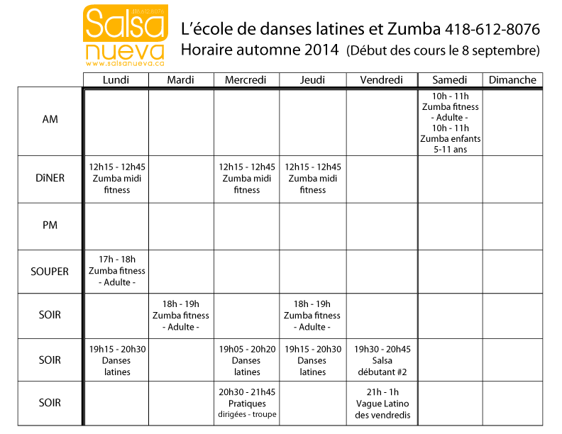 Voici l'horaire détaillé de Zumba au StudioDanse: