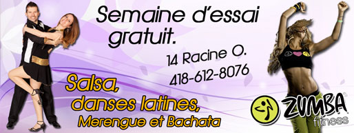 La nouvelle saison est à nos portes! Pour le début des cours, nous offrons une semaine d'essai gratuit du 8 au 13 septembre. Nous ouvrirons une nouvelle case horaire pour le Zumba au StudioDanse! En plus des mardis et jeudis 18h et samedis 10h, nous offrirons les lundis 17h! N'oubliez pas le Zumba-kids qui se poursuit les samedis 10h! Nous offrons également le Zumba du Midi. Pour infos: 418-612-8076