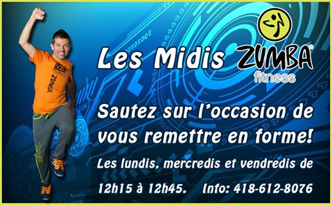 Afin de mieux vous servir, l'horaire du Zumba midi devient le suivant: