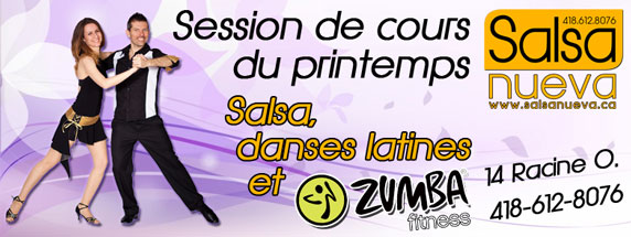 Le StudioDanse et Salsa Nueva aura un kiosque au Salon de la femme 1ere édition au Delta à Jonquière les 11-12-13 avril 2014. Nous y serons avec l'infos pour les cours de danse, les produits "Herbalife" et nos chaussures de danse. Présentation et animation sur scène à chaque jour soit le vendredi, samedi et dimanche: Salsa, Zumba, BatuKa et plus! Nous prendrons également les inscriptions aux cours sur place.