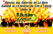 Nous serons aux Galeries de La Baie le 15 février de 13h à 15h30 pour vous faire danser! Au menu, danse africaine, danse orientale et Zumba!!! Du plaisir pour toute la famille. Une activité gratuite à ne pas manquer :)