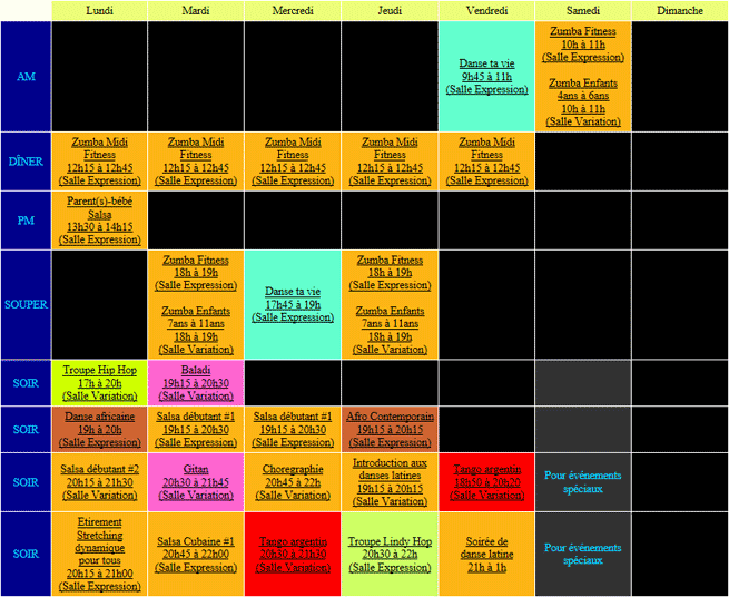 Voici l'horaire des cours au StudioDanse: