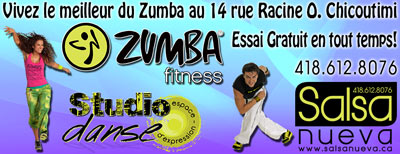 Venez vivre l'expérience ultime du Zumba à Saguenay avec Salsa Nueva. Nous vous offrons en tout temps un essai gratuit!!! Profitez de l'ambiance "party" du StudioDanse et de la fougue de nos instructeurs de Zumba!